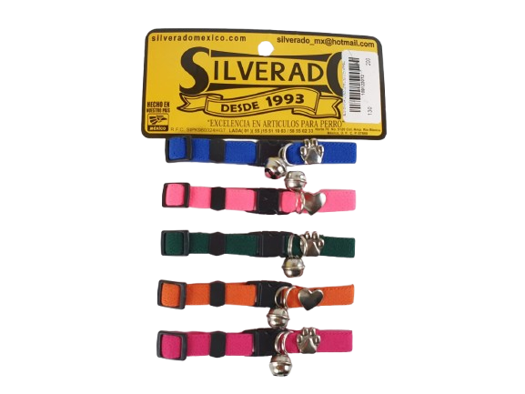 Collar individual para gato en presentación blíster, con ancho de 12 mm, disponible en diseño liso o estampado. Es un accesorio ligero, cómodo y resistente, pensado para gatos de tamaño pequeño a mediano. Incluye cascabel decorativo en algunos modelos. Perfecto para uso diario, aportando seguridad y estilo.