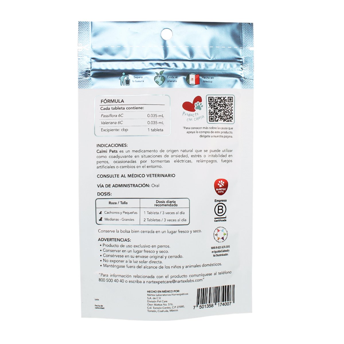 1- Calmi Pets de Nártex son tabletas auxiliares en situaciones de ansiedad, estrés o hiperactividad.