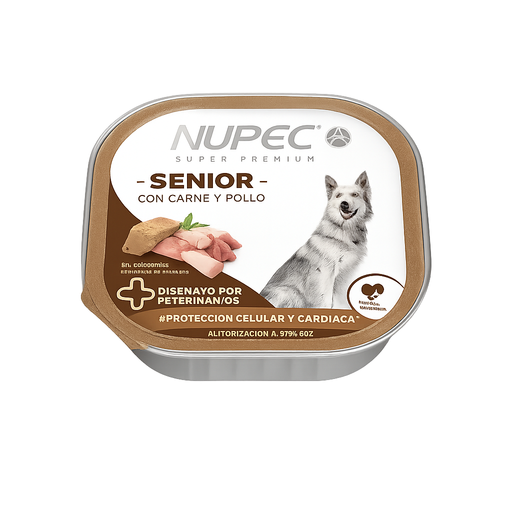 Diseñado para gatos mayores de 9 años, este alimento húmedo pertenece a la línea Felino Senior de Nupec, adaptado especialmente para las necesidades nutricionales de gatos en etapa madura