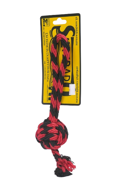 Una pelota integrada con cuerda y asa que potencia el juego entre dueño y perro: lanzar, traer y morder con seguridad, resistencia y diversión.