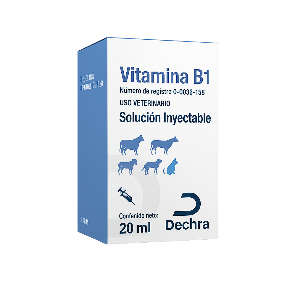 Suplemento vitamínico antineurítico inyectable que proporciona clorhidrato de tiamina (vitamina B1). Indicado en animales con deficiencia de tiamina, ayuda a corregir trastornos nerviosos, anorexia, retraso en crecimiento, alteraciones cardiovasculares y metabólicas como en intoxicaciones por etilenglicol o plomo.